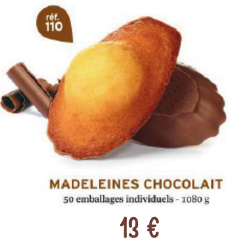 Description du produit : 50 madeleines chocolait (emballage individuel)